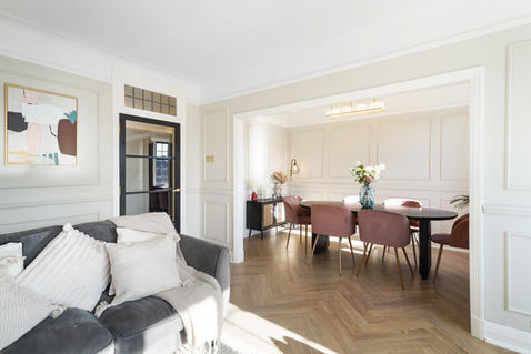 This flat boasted some beautiful features which we wished to return including a marble fireplace and original 1930's hallway panelling. The flat was designed to a high specification with modern panelling and a Scandi inspired theme with a focus on Crittall. The property has a stunning family bathroom and oak herringbone laminate.