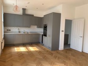 This flat refurb was a labour of love. When we purchased the property, everything was yellow and extremely dated. We stripped everything out and started again with a full re-wire and central heating system, re-plaster and re-levelling of the floors, before fitting out a new high-end kitchen with quartz worktops, real wood parquet blocks, and a marble tiled Villeroy Boch bathroom, all decorated in tones of grey and white.